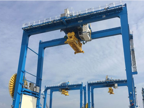 Козловой кран с резиновой опорой состоит из рамы моста, механизма перемещения крана, тележки и электрических деталей. Кран данного типа спроектирован с жесткой и стабильной стальной конструкцией, он точен в управлении, отличается плавной работой точным позиционированием спредера.