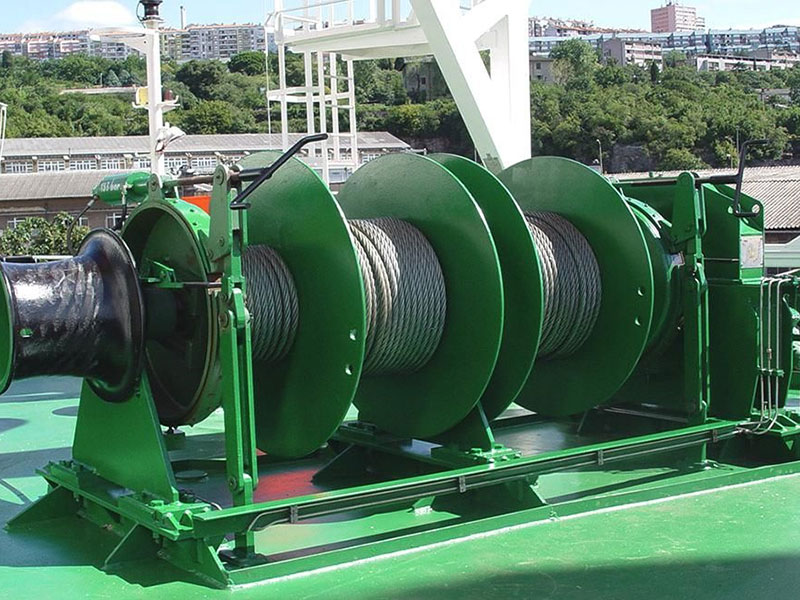 Основные элементы морской лебёдки включают барабан, якорное колесо, цепь, трос, ручной тормоз, ручную муфту, силовую установку и систему управления.